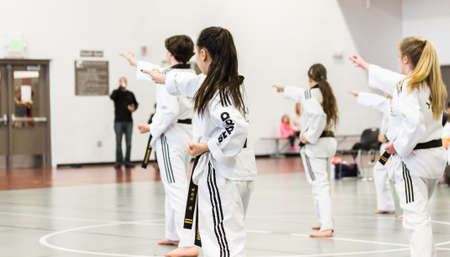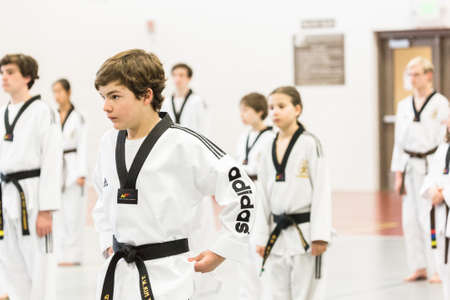 Denver, Colorado, USA-February 21, 2016. Tae Kwon Do testing for verious degree of black belts.