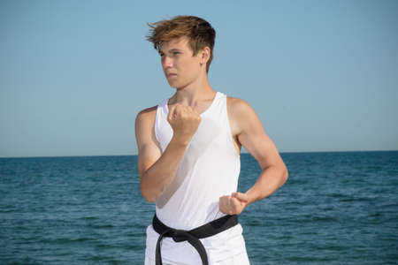 A 17 Year Old Teenage Black Belt Doing Karate on A Beach