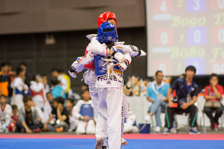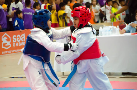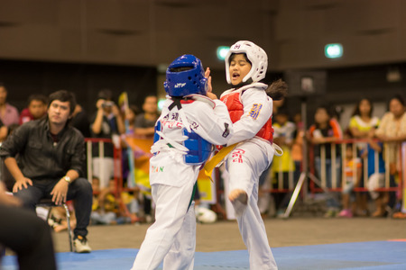BANGKOK, THAILAND - APRIL 4 : Unidentified Thai students 4 - 17 years old in action at GH BANK Taekwondo championship 2015 on April 3-6, 2015 in Bangkok , Thailand