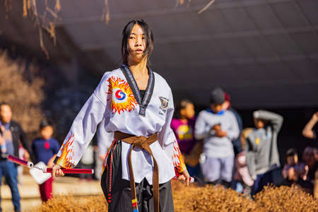 Oklahoma, JAN 29 2022 - Sunny view of the Taekwondo performance in Lunar New Year Festival