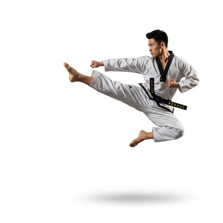 Precision in Motion Asian Taekwondo Kick in Mid-Air