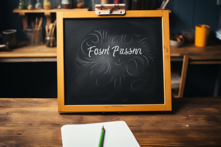 Blank portable blackboard for adding chalk text and copy space. Old school objects for educative aesthetics presentation template. Right side copy space for design or logos