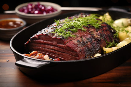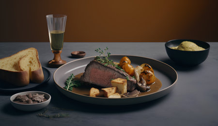 recipe with sous-vide and slow-cooking techniques: tender beef roast, ready to be accompanied by a variety of side dishes, created with generative ai
