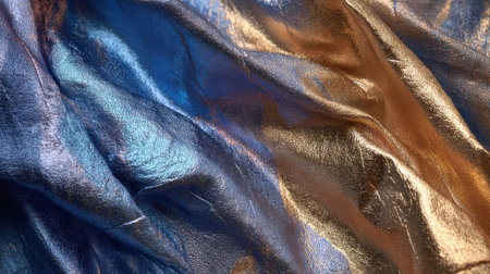 Luxurious fabric in shades of blue and gold creates a stunning visual display in soft light.