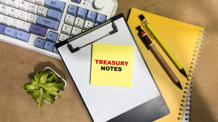 Concept of Treasury Notes write on sticky notes isolated on Wooden Table.