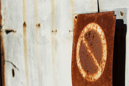 Corroded white metal background. Rusted white painted metal wall. Rusty metal background with streaks of rust. Rust stains. The metal surface rusted spots. Rysty corrosion.