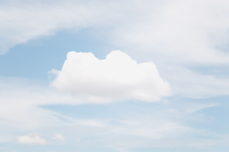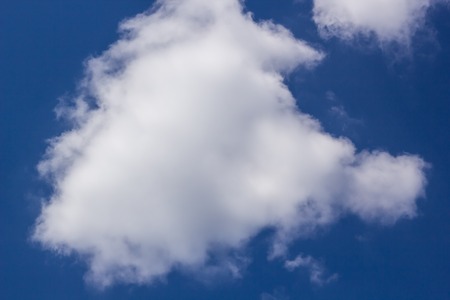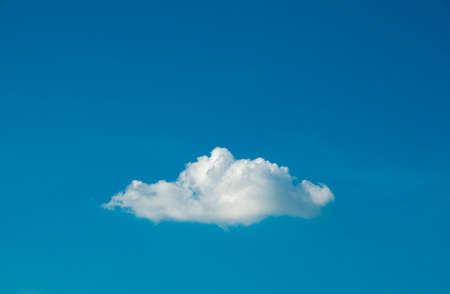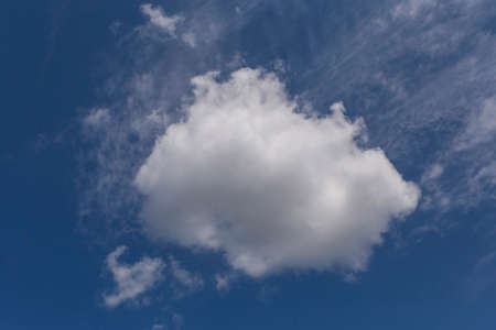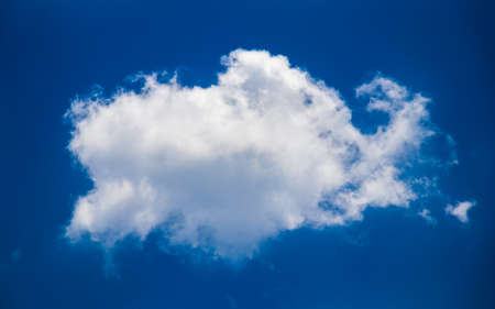 Cloud background. Single cloud with a bright blue sky on a warm and sunny spring day in May.