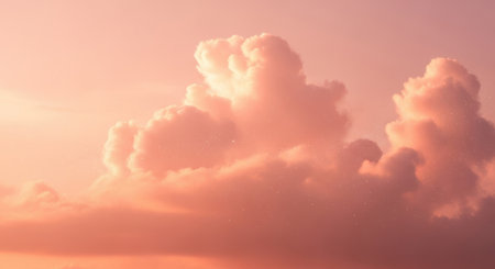 A beautiful view of soft clouds illuminated by dusk light, showcasing a tranquil blue sky atmosphere filled with serene details and textures.