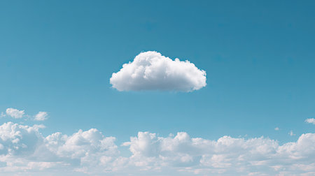 A tranquil blue sky features a single fluffy white cloud, creating a peaceful atmosphere perfect for conveying calmness and serenity in nature.