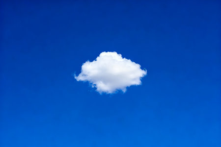 Single fluffy cloud against a calm blue sky, embodying peace and simplicity