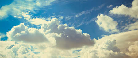 Blue sky and white clouds abstract background. Copy space nature and environment concept. Vintage tone filter effect color style.