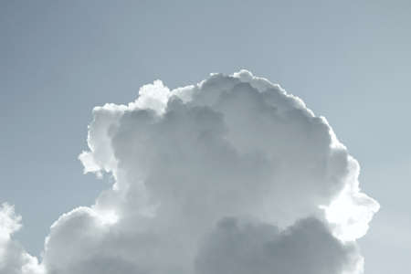 Large cumulus clouds are seen dominating the frame, with varying shades of white and gray contrasting against a clear blue sky. The texture of the clouds appears soft and voluminous. This image could be used for various purposes such as illustrating weather concepts or design backgrounds.