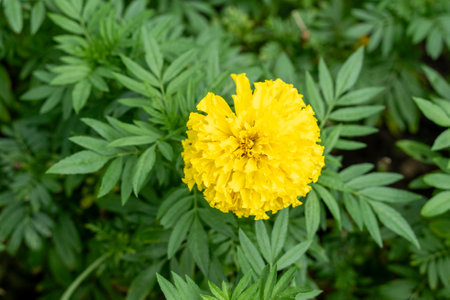 Tagetes erecta ornamental and medicinal plant with orange and yellow flowers.
