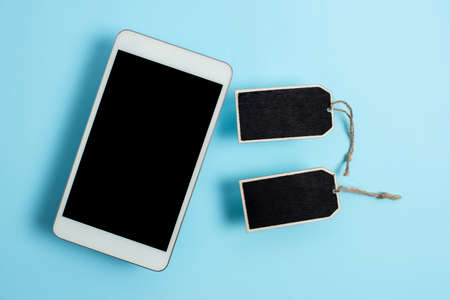 Labels as a copy space for text and discounts on blue background. Black Friday is a sale. Horizontal.