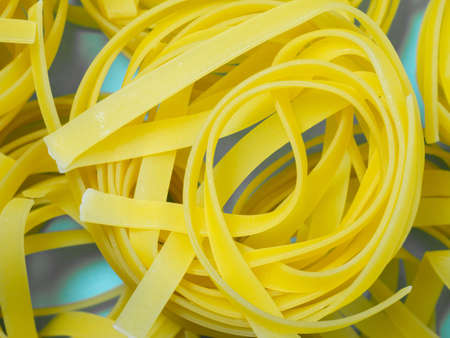 Macro pictore of traditional Italian raw pasta Tagliatelle, selective focus image. Vegeterian food. Nutrition concept. Italian kitchen. Food preparation. Food pasta background. Wallpaper. Tasty.