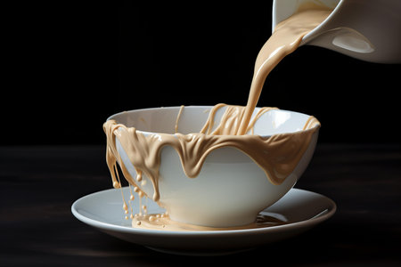 Artistic Hand pouring late. Mug pitcher. Generate Ai