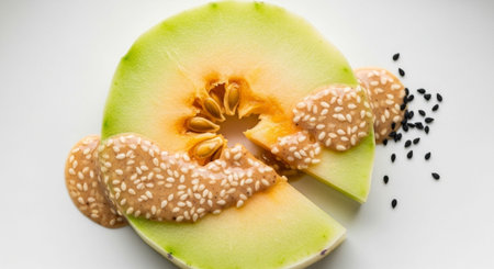 drizzling black sesame seeds onto a fresh jianbing, created with generative ai