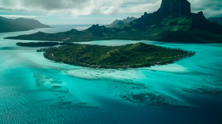 Bora bora aerial view, tahiti french polynesia. Generative AI illustrator