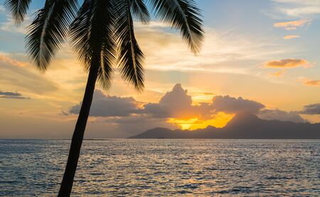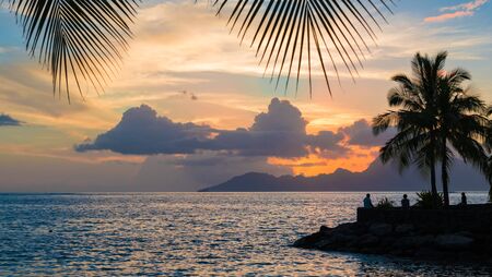 Stunning colorful sunset sky with clouds on the horizon of the South Pacific Ocean, Summer vacation trips,Vacation concept, Luxury travel.