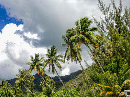 Beautiful mountain landscape with mount Turi on Huahine Island, French Polynesia.