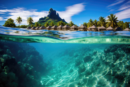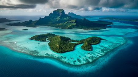 Bora bora aerial view, tahiti french polynesia. Generative AI illustrator
