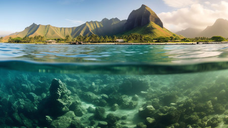 Paradise view of the island of Mauritius from the water, Bora Bora landscape, AI Generated