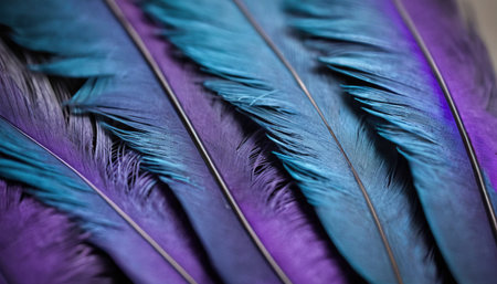 Some blue and purple feathers. Generative AI Illustration