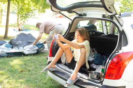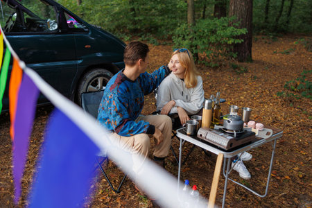 Romantic Camping Scene with Couple Relaxing in the Outdoors