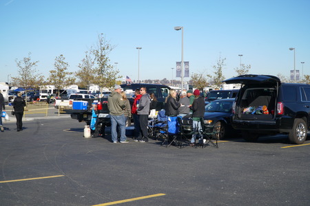 East Rutherford, New Jersey - November 2016: New York Jets fans tailgate outside Metlife Stadium before sunday football game to cheer for favorite team.