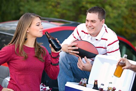 Tailgating: Friends Having Drinks From Cooler At Tailgate Party