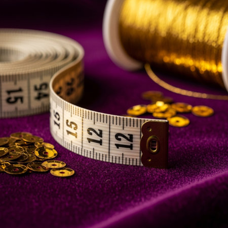 Capture the essence of creativity with this vintage measuring tool, beautifully positioned on a vibrant textile surface, perfect for art or design projects.