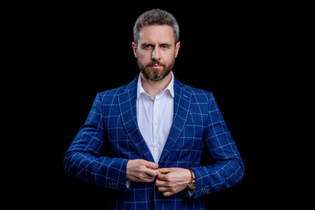 Office manager boss isolated on black. Business boss in suit. Big boss. Professional businessman. Businessman. Business leadership and success. Successful business man in office. Cropped view