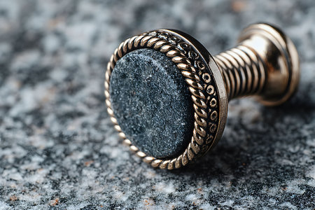 Elegant Vintage Brass Door Knob with Textured Stone Inlay on Granite Surface Generative AI