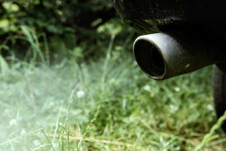 combustion fumes coming out of car exhaust pipe as concept of damage in the climate change and global warming