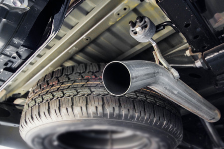 Muffler and tailpipe on a car, the section of the exhaust system of a motor vehicle for transportation concept