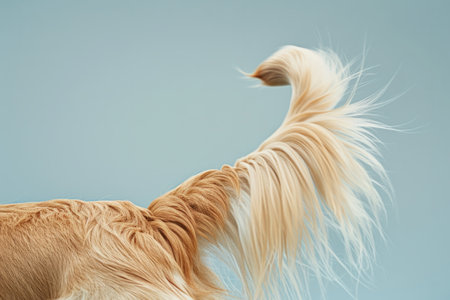 Close up brown dog tail (Golden Retriever) isolated on white background. Top view with copy space for text or design