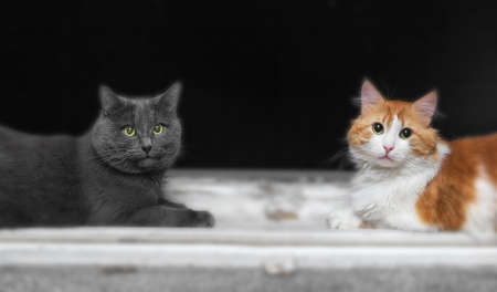 A group of beautiful cats . Portrait of colorful cats looking at the camera.
