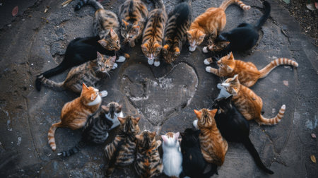 Group of cats sitting in circle