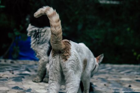 Limassol Cyprus April 11, 2020 View of domestic cat living in the streets of Limassol in Cyprus island