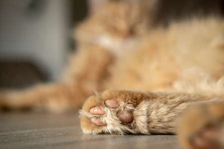 Cat paw close up. domestic pet resting