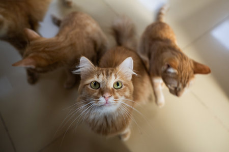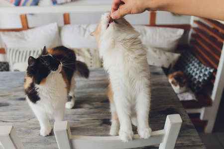 Cats are watching while waiting for food