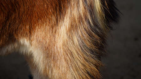 Goat or Capra aegagrus Fur Texture closeup. Brown soft fibre to make woolen clothes and textile industry.