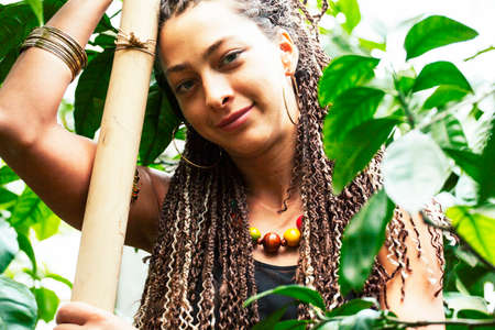 young latino angry about deforestation, in the middle of a beautiful bamboo forest in the majestic colombian mountains, posing with his arms crossed. ecology concept