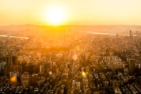 Aerial view of the city at sunset in Taipei, Taiwan
