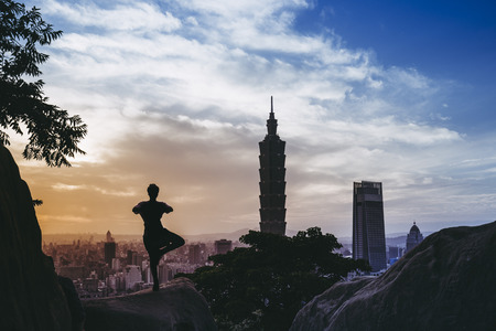 Taipei, Taiwan city skyline at sunset from view of Taipei City, make a hike to the top of Elephant Mountain