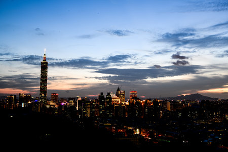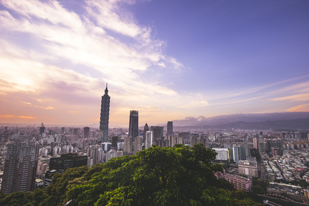 Beautiful architecture building taipei city skyline at sunset in Taiwan