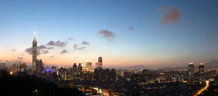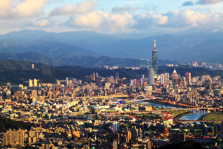 Taiwan city skyline at sunset in twilight time