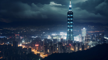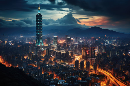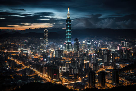 Taipei 101 Majestic skyscraper to twilight., generative AI