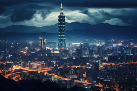 skyline of taipei city with 101 tower in taiwan