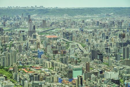 Aerial view of Taipei city in a sunny day. Taipei city skyline, Taiwan.